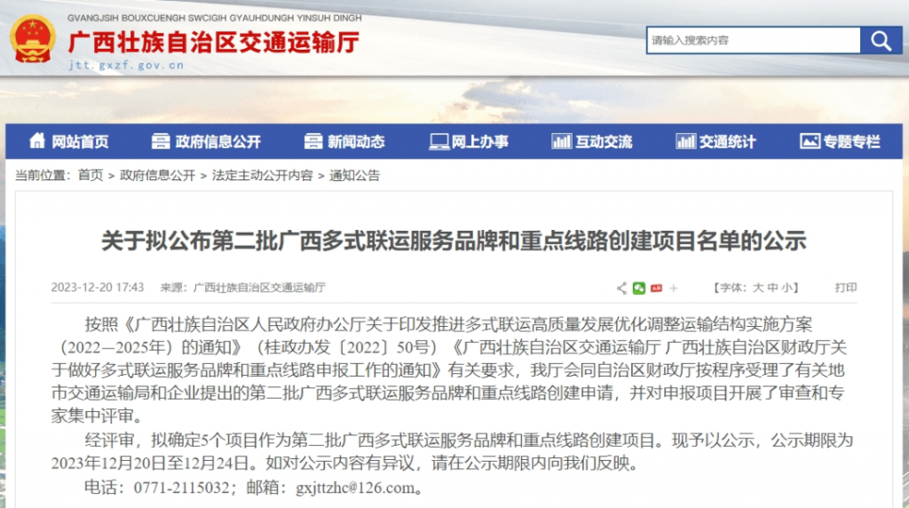 廣西多式聯運服務品牌和重點線路項目貴港多式聯運項目