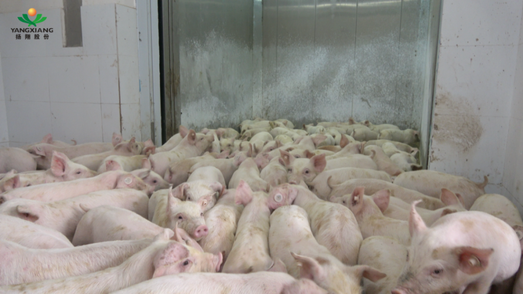 常規的屠宰方式是生豬出欄后,經長途跋涉運輸到屠宰場進行屠宰,豬會產生應激反應,一是累,肌肉里面的乳酸就出來了,二是恐懼,腎上腺素就出來了,全部在內臟里。雖然豬運輸到屠宰場還需靜養12個小時,但是12個小時并不能解決這些問題。而在揚翔智能設施樓房豬場,生豬到出欄時間,直接坐電梯下樓,聽著音樂送上傳送帶,利用二氧化碳窒息法致暈,就地屠宰,充分保障了肉質的優良。