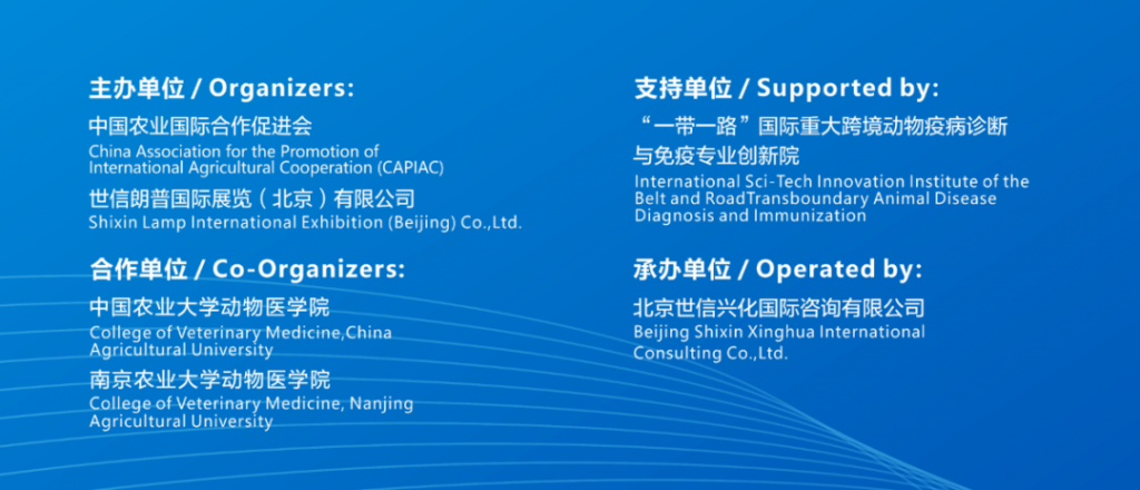 大會由美國堪薩斯州立大學、國際動物衛生合作伙伴、正大集團、美國明尼蘇達大學、美國喬治亞大學、美國愛荷華大學、中國農業大學、南京農業大學的多位知名專家發起,由中國農業國際合作促進會、世信朗普國際展覽(北京)有限公司共同主辦,與中國農業大學動物醫學院、南京農業大學動物醫學院大力合作,得到了“一帶一路”國際重大跨境動物疫病診斷與免疫專業創新院的支持,北京世信興化國際咨詢有限公司承辦。
