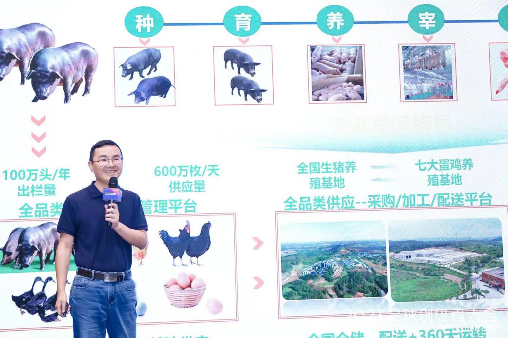 大會上,張邦輝作了《共創·共享·共贏——讓“拾分味道”滿足消費者升級需要》主題演講。他說,好吃的豬肉首先是養出來的,從飼料、種源再到豬場,都對肉的生物安全和風味管理至關重要;一些不好吃的豬肉也與養殖有關,比如使用劣質飼料、陳化糧產生的黃膘肉、舒適度差造成的疾病以及濫用抗生素等;而屠宰是將豬變成肉便于客戶消費的過程,不當宰殺會毀壞豬肉的價值,比如屠宰過程中的應激反應、環境污染、溫度控制不夠、不摘三腺等。而天邦旗下史記生物、漢世偉、拾分味道共同構建了豬只從種源到餐桌的全程可控、可溯源,臨泉工廠的先進生產工藝和流程為豬肉食品加工的安全、長貨架期、高品質和可溯源提供了堅強支撐。他說,并不是每一頭養出來的豬肉都好吃,臨泉工廠通過26道在線檢測檢疫及液質聯用儀測定,剔除亞健康豬肉和鎖定美味豬肉。不同背膘的豬肉都有喜歡它的客戶以及豬肉的背膘厚并非一定決定價格不同,比如,城市白領、金領會選擇偏瘦的1-3級背膘豬肉,而運動量大、體力支出大的人群如出海漁民和建筑工人會偏愛4級以上背膘的豬肉——找準消費人群才能最大化實現價值。而白條銷售有時候不能最大化挖掘豬肉的價值,而通過精分割和深加工,針對不同區域和消費人群可以帶來新的銷售機遇。因此,精分割會帶來豬肉銷售的革命:將改變從業者業態、最大程度避免浪費、提高物流效率、極大降低成本和精準適配目標客戶。在精分割的基礎上,與合作伙伴一起通過共建品牌+數字化營銷,推廣諸如“豬肉西施”檔口銷售形態,可以全面提升人均日銷售收入,并希望合作伙伴將拾分味道當成屠宰車間、精加工車間、調理車間,甚至于是代工廠和研發基地,從而騰出更多時間、資金和精力去開發產品市場,拓展優質客戶,與天邦實現共創、共享、共贏!他還列舉了天邦在生產飼料業務方面幫助過的諸多因美味而聞名并取得巨大商業成功的合作伙伴,相信豬肉也將沿著此路,找到和成就更多的合作伙伴!