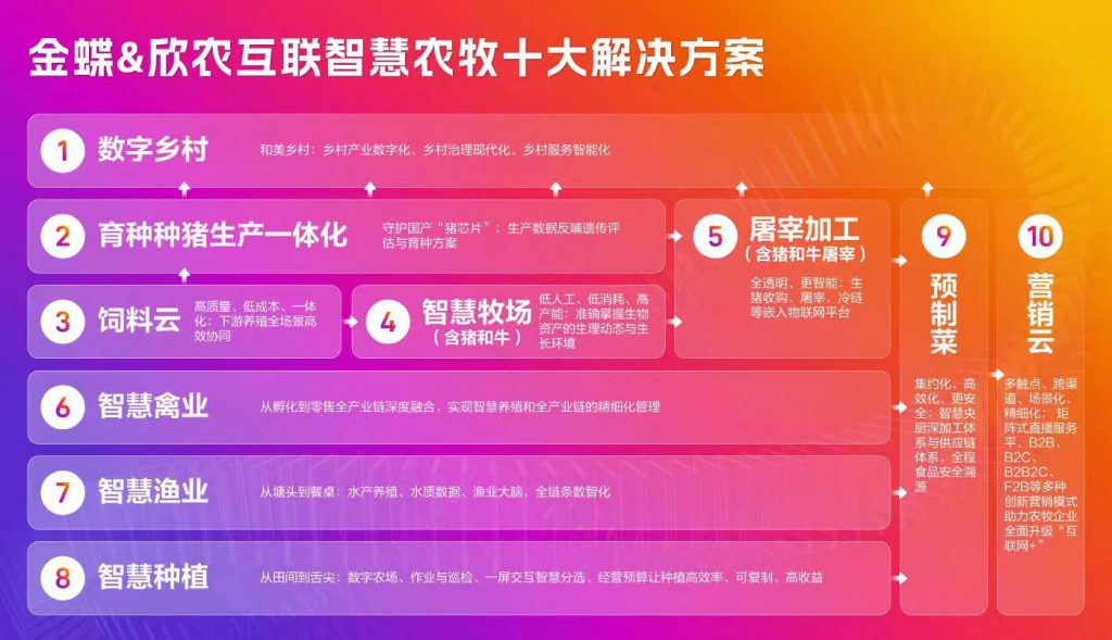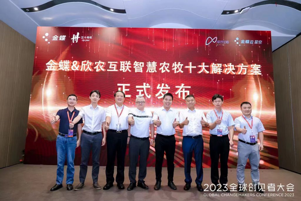 在本次峰會中,金蝶與欣農互聯聯合發布了具有行業領先意義的“智慧農牧十大解決方案”,與會嘉賓共同參與見證了發布儀式。