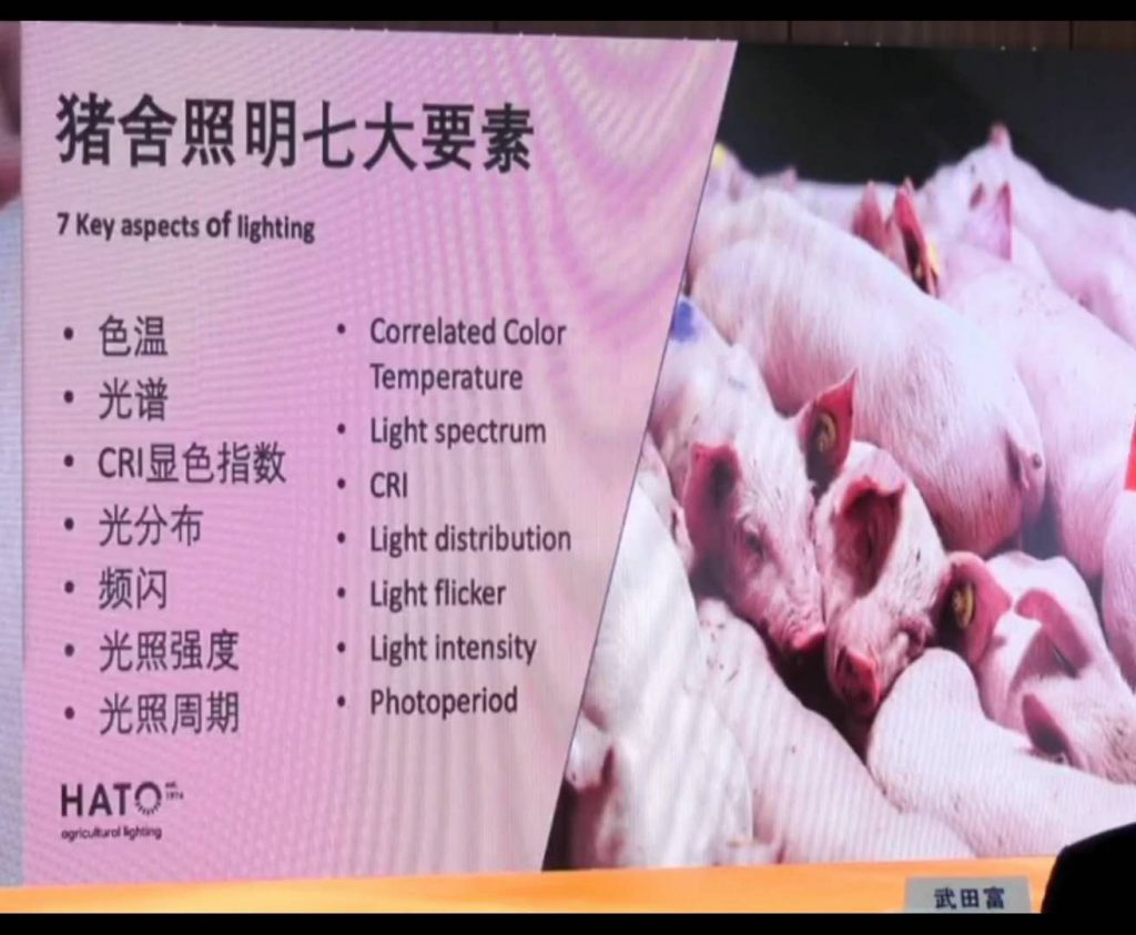 研討會上,荷德照明(HATO)資深光照設計師單天超先生向大家分享了題為《照明對豬的福利和生產的影響》報告,從專業的角度分析了豬對光線的感知、對顏色的分辨以及頻閃對豬的影響。讓大家了解到了通過合適的光照可以區分豬的舒適區、排泄區和休息區,讓豬活得更加的體面。
