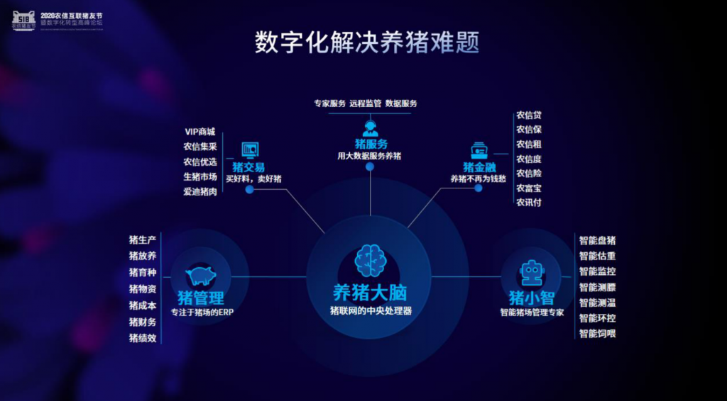 “豬聯網就是農信互聯一直打造的生豬產業互聯網平臺,豬聯網就是養豬業的新基建”,王柯提到。豬聯網利用互聯網、人工智能等技術將豬場管理、生豬交易、豬場服務、豬產業金融等鏈接在一起,打造生豬產業的產業互聯網,而通過這個互聯網沉淀下來的海量數據,沉淀在養豬大腦,形成真正的養豬大數據。